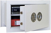 Модель WEGA-20-380 CL оснащается полочкой, которую легко вынуть или установить на нужную высоту. На сейф наносится белое структурированное покрытие порошкового типа, предохраняющее от мелких царапин. Сейф полностью утапливается в стену, для чего потребуется глубина ниши не менее 48 см.